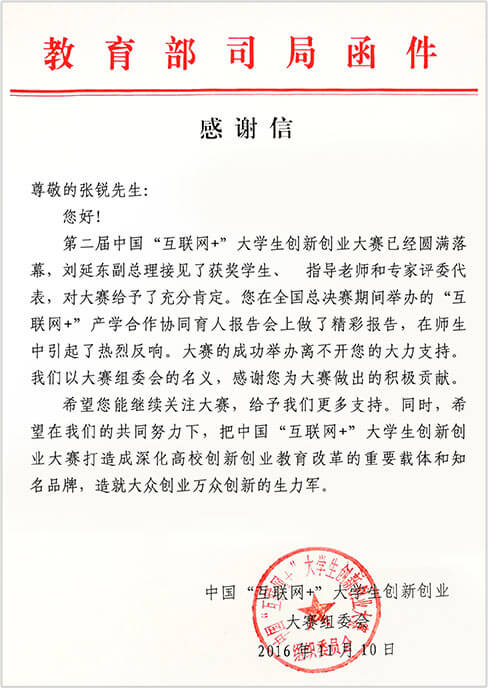 857直播董事长张锐受聘国家级大学生创新创业训练计划专家组副组长。